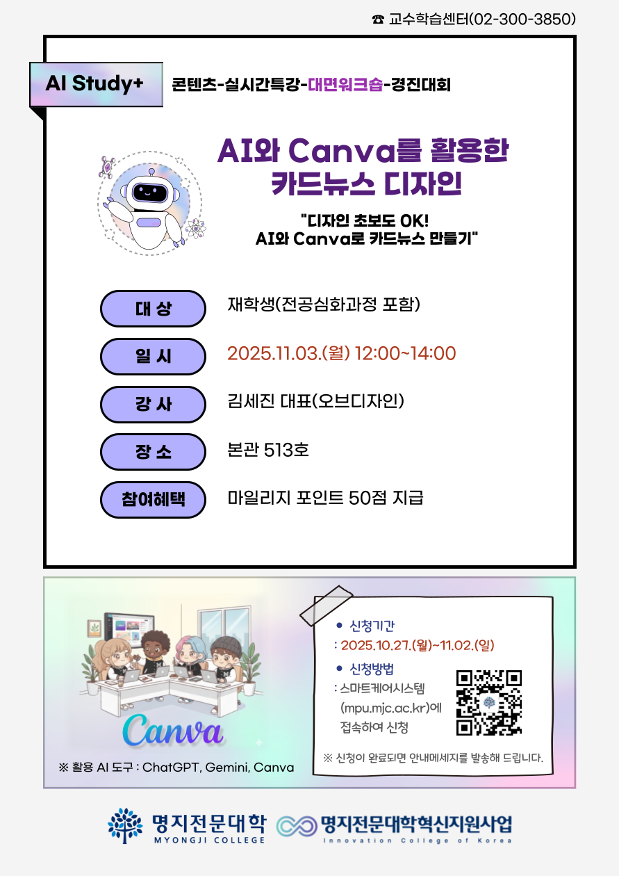 11월 3일에 진행되는 대면워크숍(Ai와 Canva를 활용한 카드뉴스 디자인)은