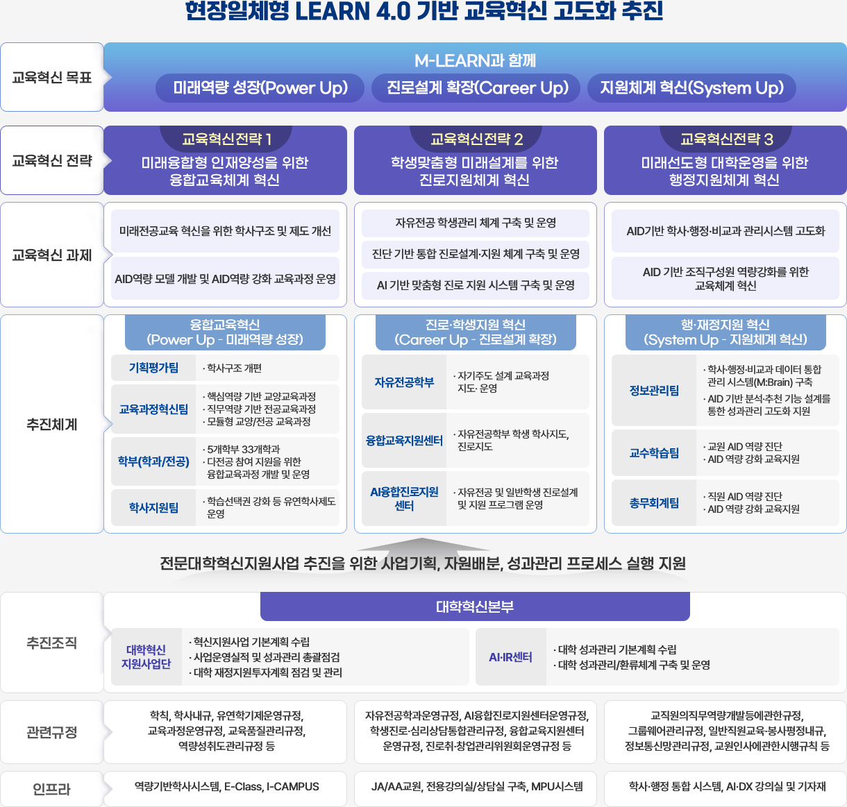대학 중장기 발전계획과 연계한 Power Up·Career Up·System Up 3대 교육혁신전략을 통해