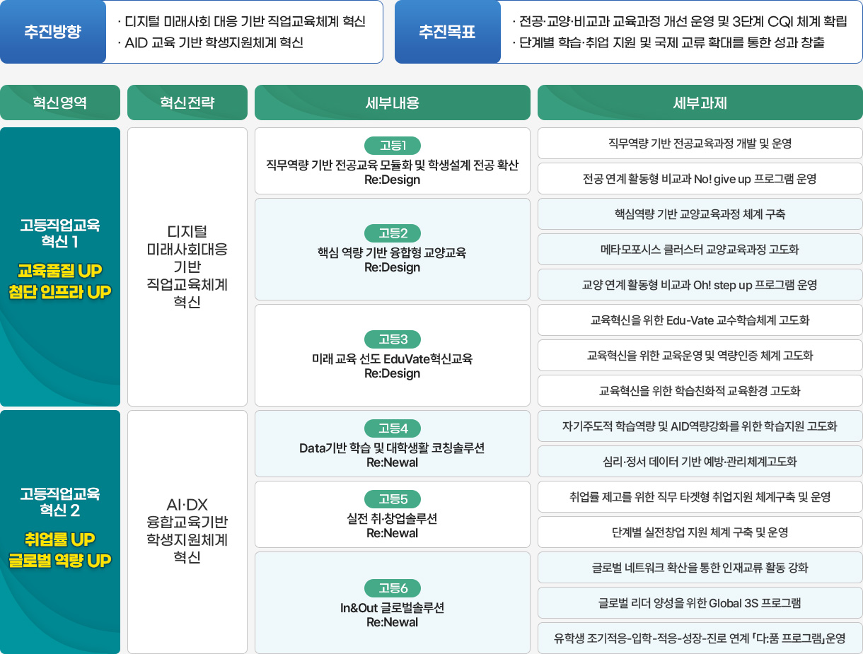 AID 기반 교육혁신을 통한 자기주도 학습, 심리·정서 안정, 타겟형 취업 등의 성과와 연계한 고등직업교육 혁신을 실현