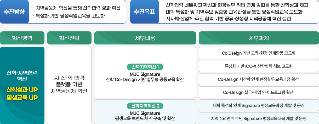 산학협력 네트워크 기반 산업수요 맞춤형 산학협력활동-산학협력지원-취업연계프로그램 운영 및 특성화 기반 평생직업교육 고도화로 산학·지역협력 혁신 실현