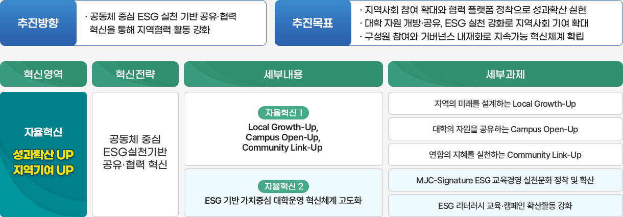 공동체 중심 ESG 실천과 자원 공유·협력을 통해 지역사회 기여를 선도하는 지속가능 혁신대학 실현